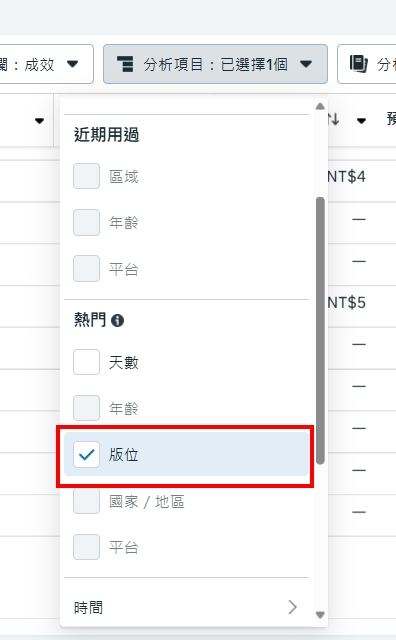 A:可以!目前最新更新 Threads 已經可以獨立查看數據!只要在分析選項中選擇「版位」就可以看到Threads 的數據囉!